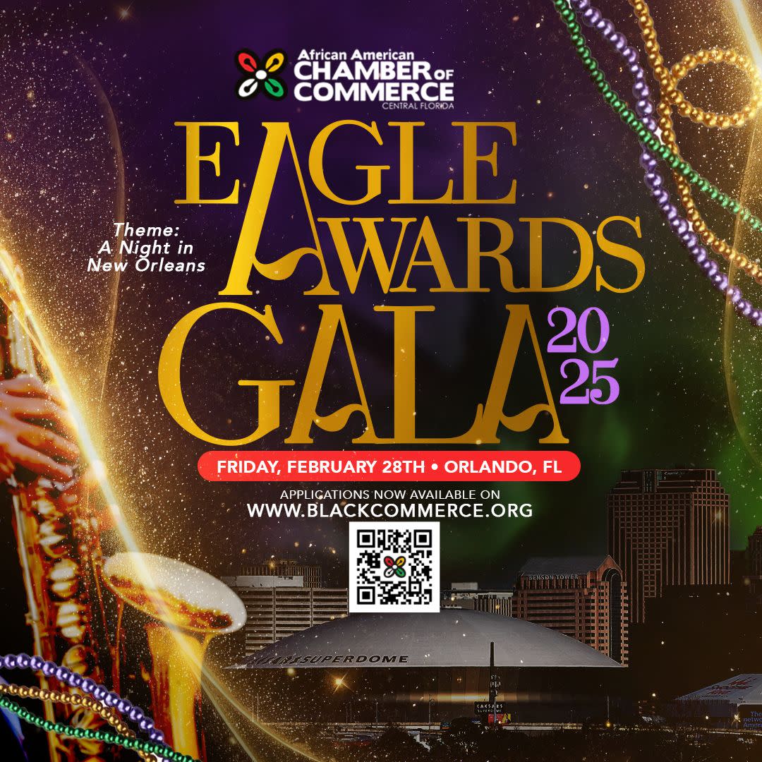 Join the African American Chamber of Commerce Central Florida for the 2025 Eagle Awards Gala on Friday, February 28th from 7:00pm-11:00pm at Disney's Coronado Springs Resort. This year's theme, "A Night in New Orleans," will set the stage as they "Let the Good Times Roll." CLICK HERE to learn more and purchase tickets!